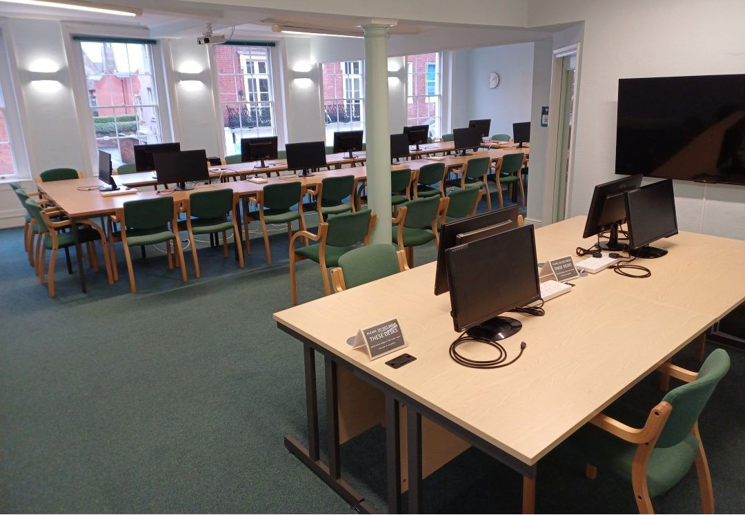 We are a Grade II listed building which means that we have lots of character and soft, comfortable furniture … which means that the atmosphere is calm and quiet – not clattery and noisy. At the same time we are bang up to date, with large screens in all rooms and a fibre lease line internet connection running at 200Mbps up and down.
